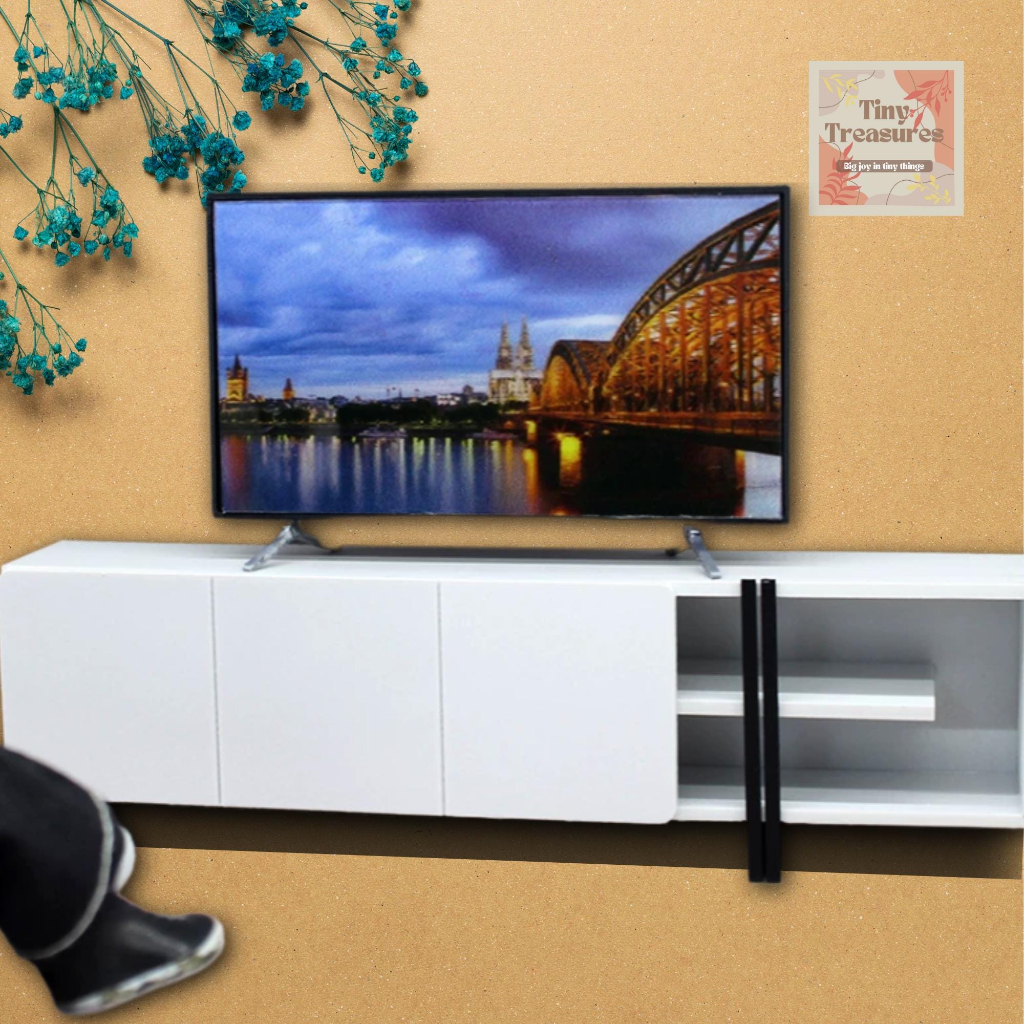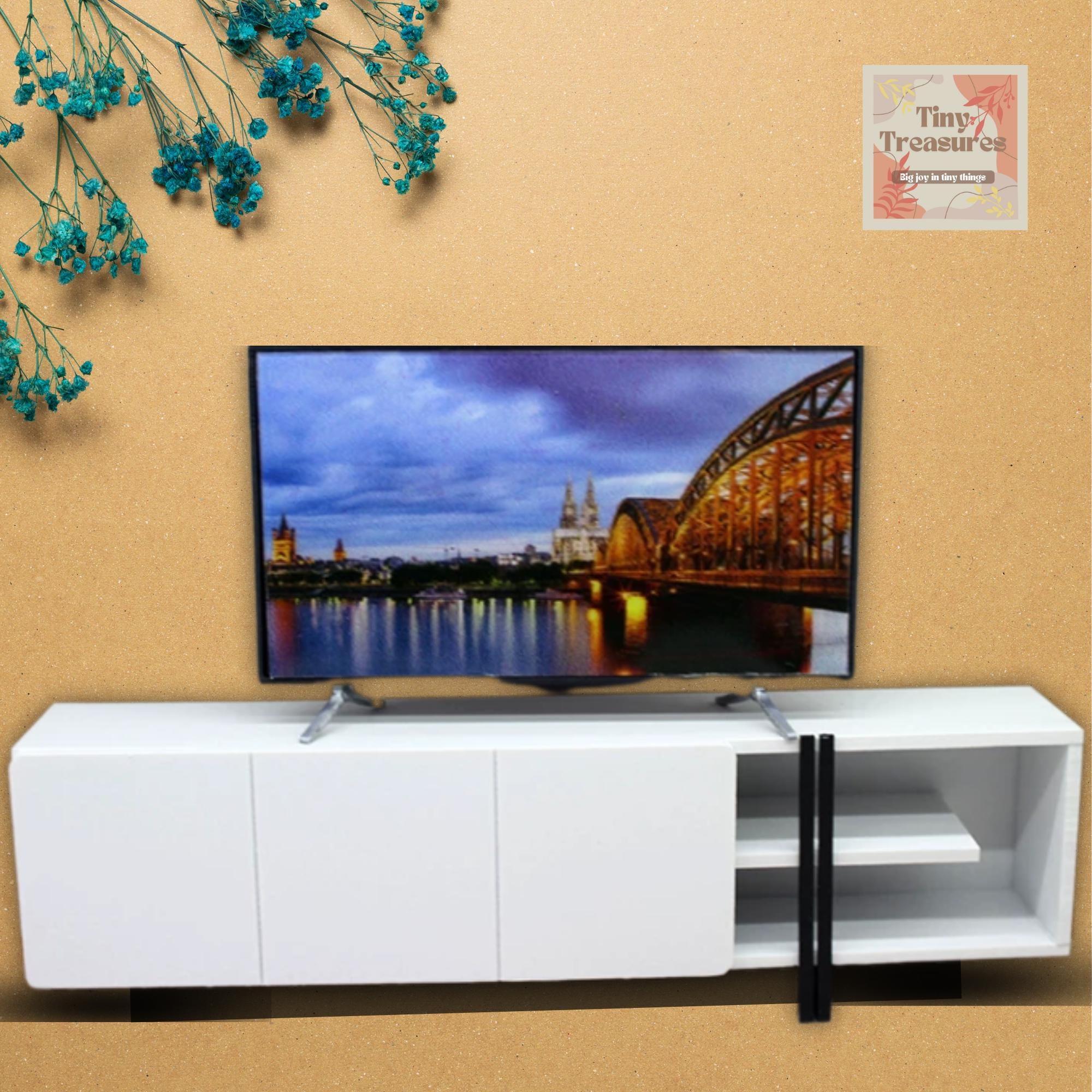 Enhance your miniature living room, office, or entertainment setup with this detailed and modern TV design.