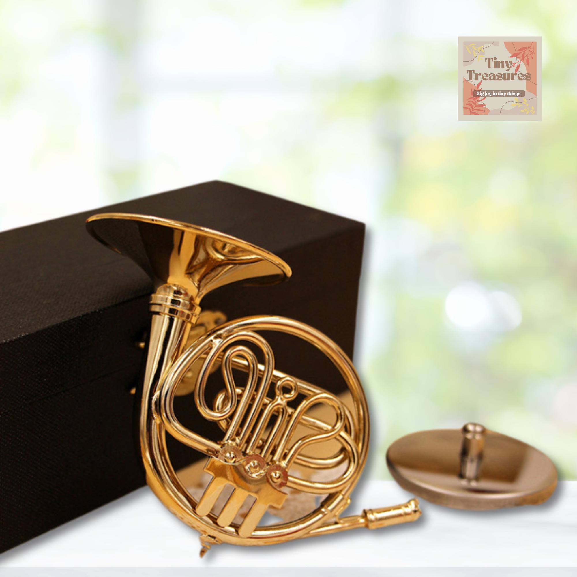 This handcrafted mini French horn model brings the beauty of brass instruments into miniature form. Perfect for musicians, collectors, dollhouse decorators, and music-themed gifting.