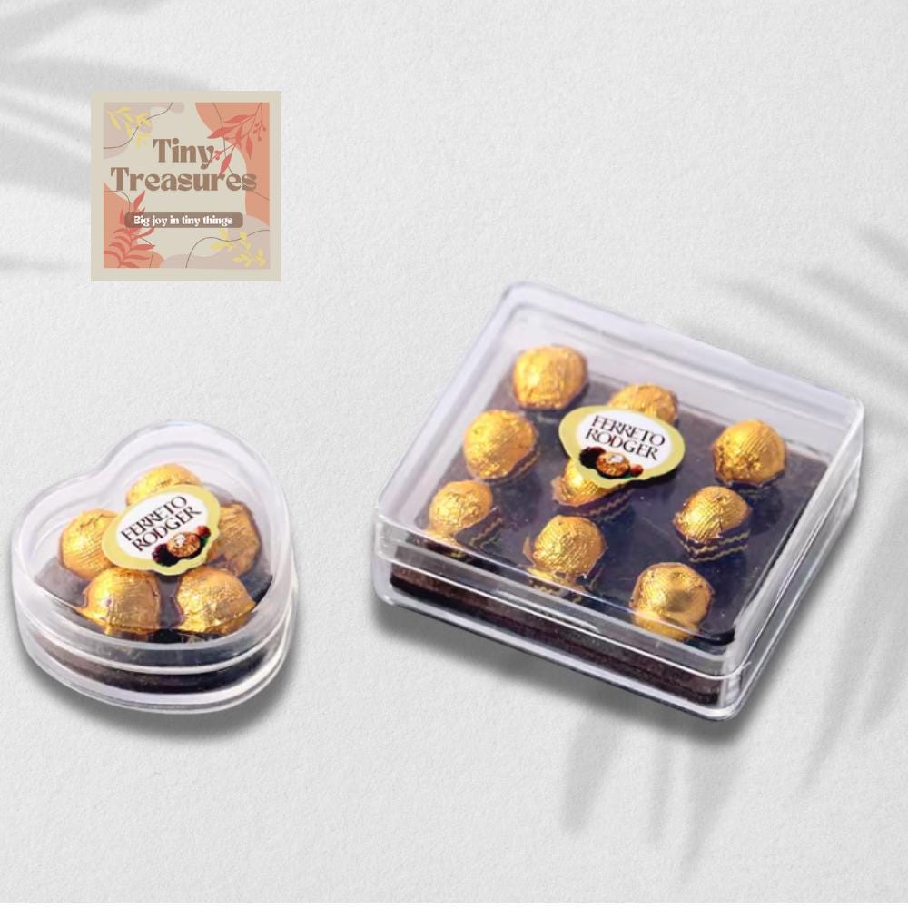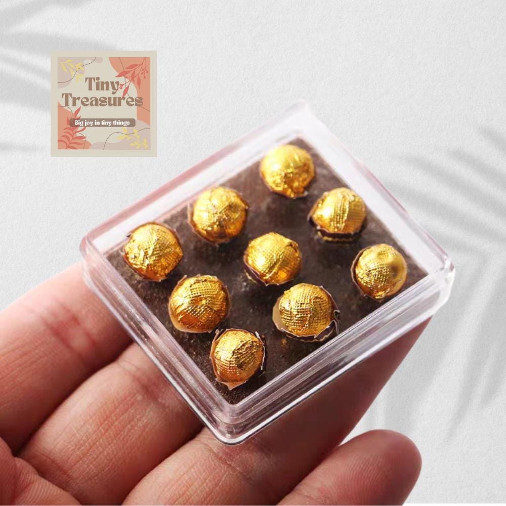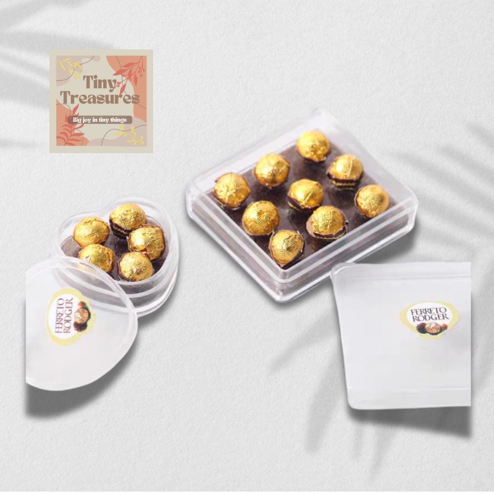 Add a touch of sweetness to your dollhouse or miniature collection with this adorable mini Ferrero Rocher chocolate set! Each piece is meticulously handcrafted from resin and plastic, wrapped in a golden foil to replicate the iconic luxury chocolate.