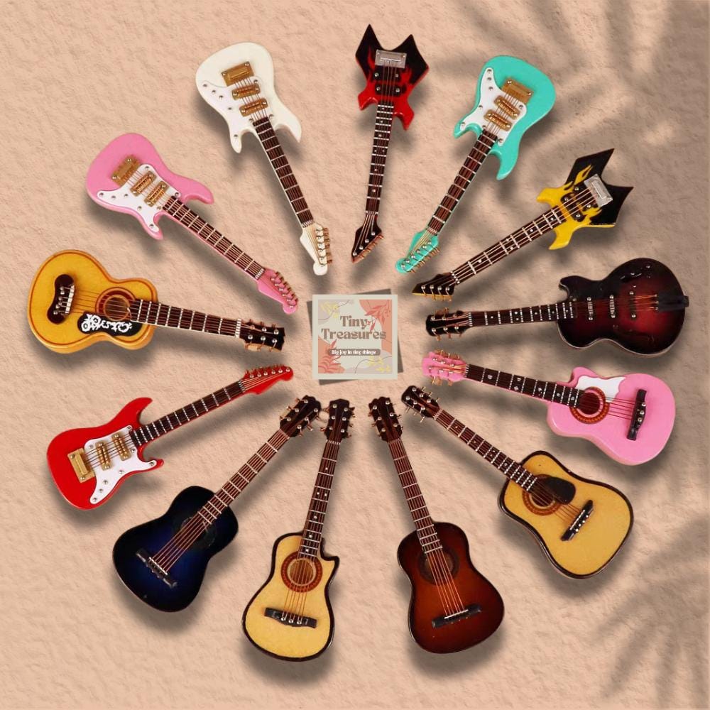 Love music? This miniature guitar set is a must-have for music lovers, dollhouse collectors, and diorama enthusiasts! Whether you’re into bass, electric guitar, acoustic guitar, or ukulele, this handcrafted 10cm wooden instrument makes the perfect collectible.