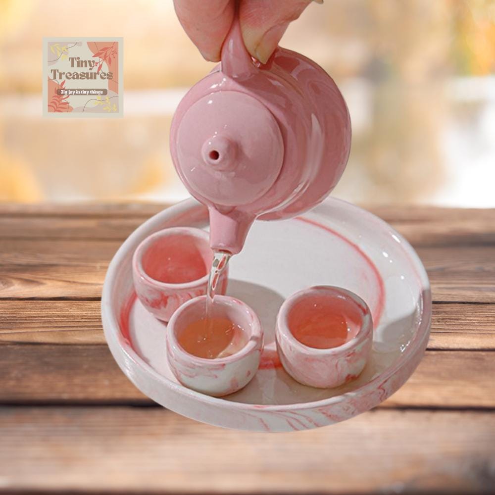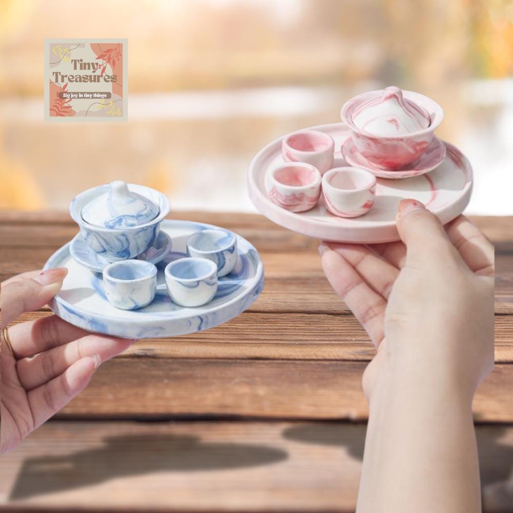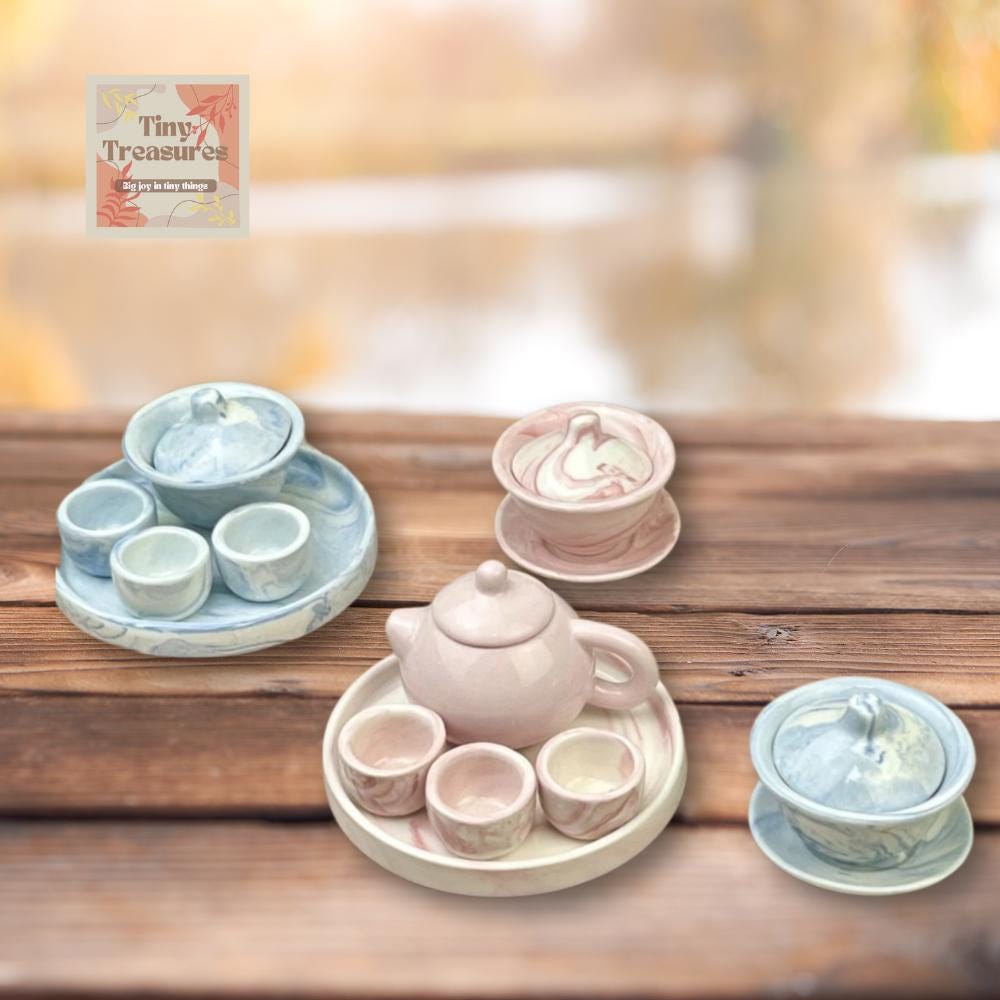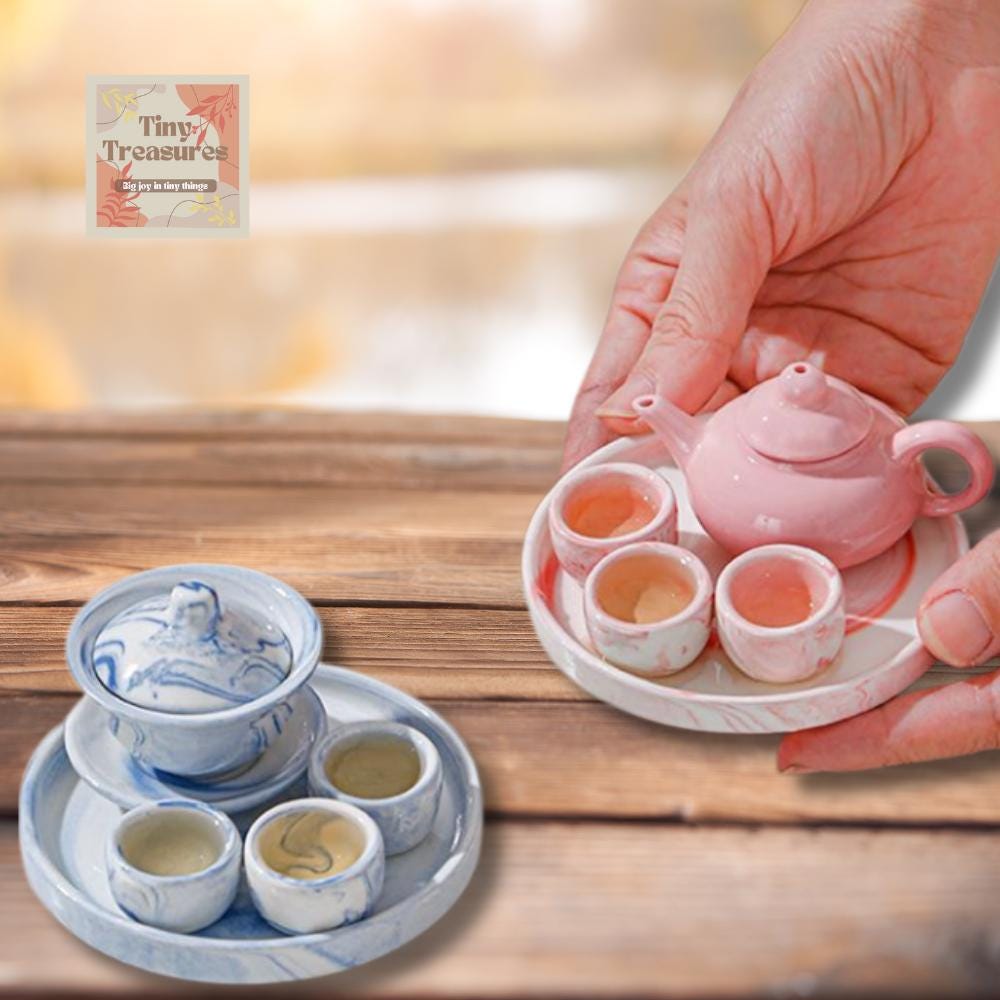 Miniature Marble Tea Set – 1:12 Scale Dollhouse Porcelain with Color OptionsMiniature Marble Tea Set – 1:12 Scale Dollhouse Porcelain with Color Options